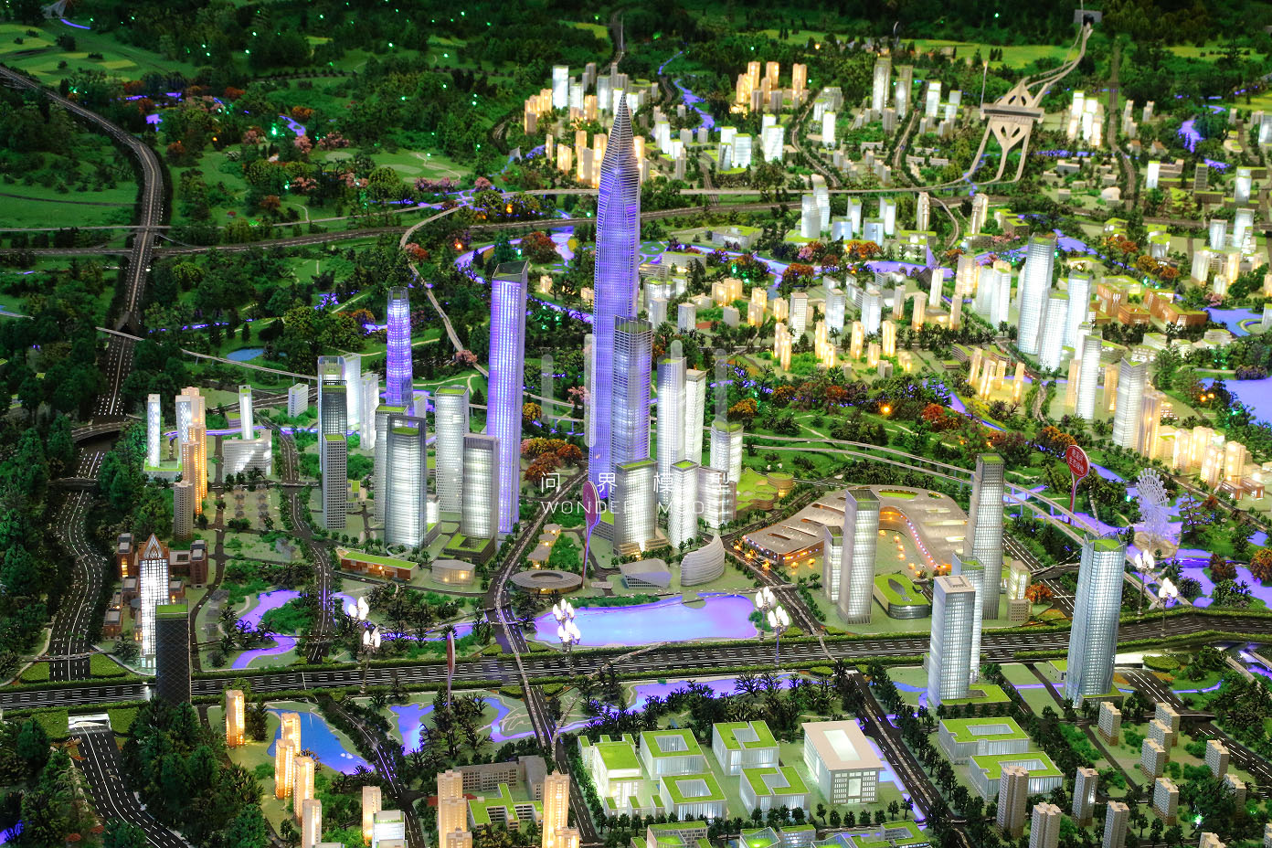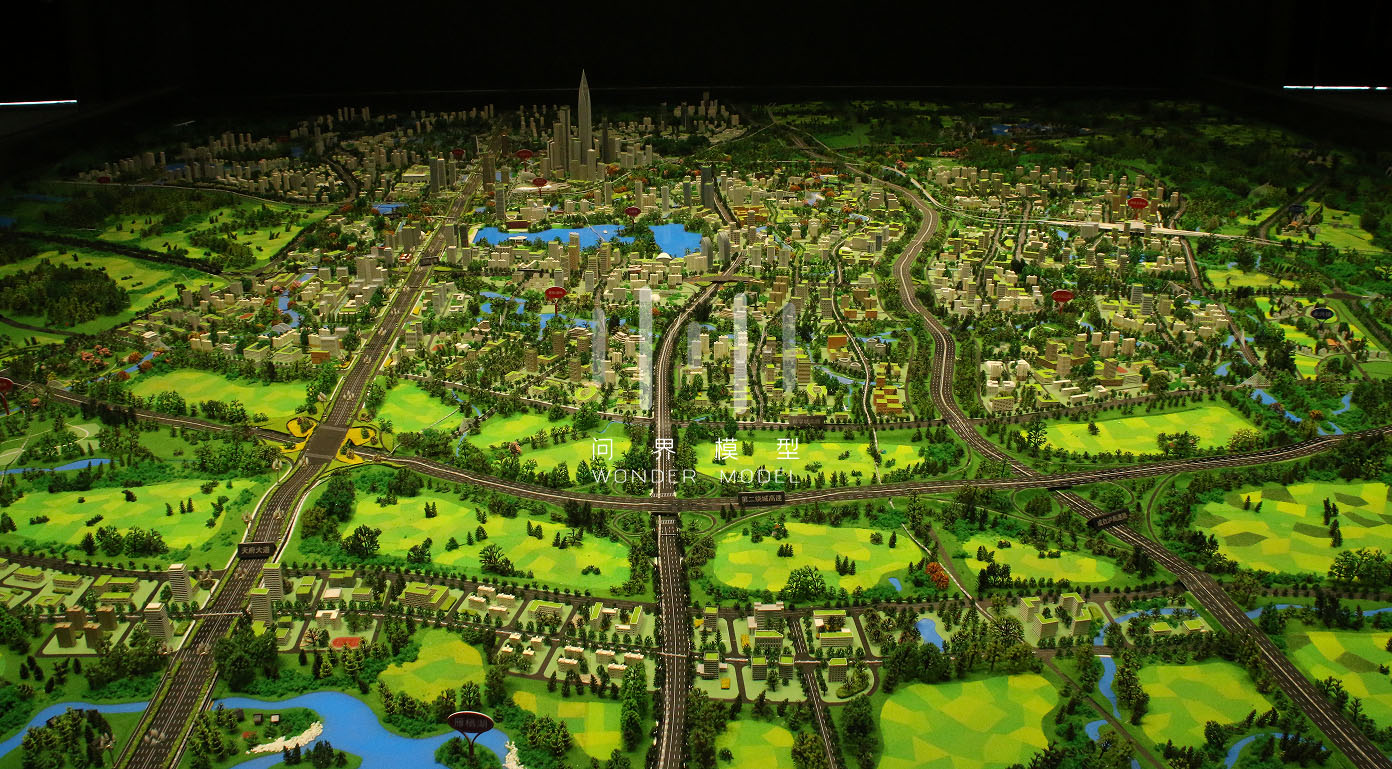 1、根据天府新区规划方案,结合业主希望呈现的展示效果,对模型大胆夸张艺术处理,在天府新区主要交通路网框架下,对重点项目夸张表现,把握新区的整体形态、建设风貌;