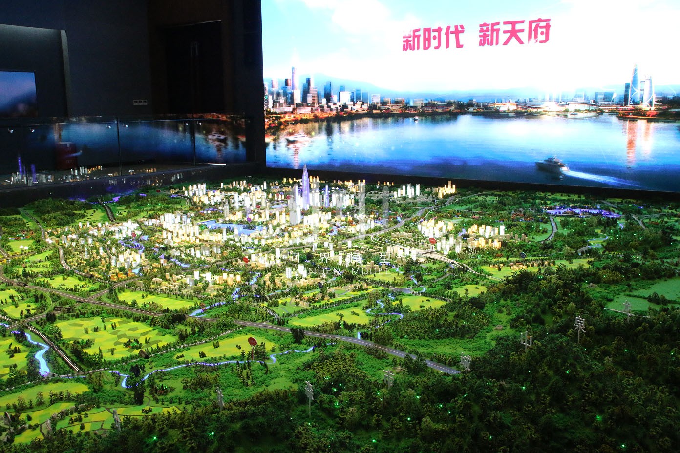 1、天府新区规划范围较大,模型展示面积较小,模型比例约1/3000,模型难以呈现展示效果;