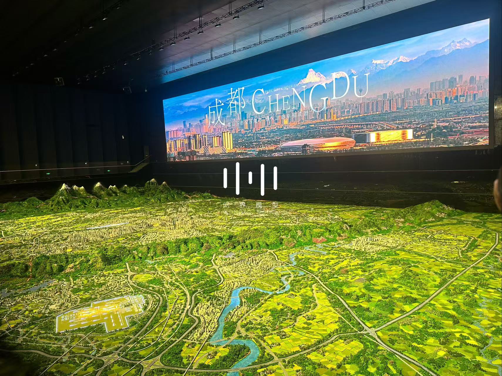 契合成都市域国土空间空间规划理念,表现了成都是雪山下的公园城市,总体体现“壮美山峰—绵延丘陵—千里沃野—现代城镇”的公园城市自然地理特征,整体呈现“两山相望、两水相依、两林相映、两田相异”的自然地理格局,凸显了“三区三线”城市空间结构。模型从山、水、林、路网、轨道、铁路、建筑、农田八大要素着手,通过适当艺术夸张的创新表现手法, 体现人与自然和谐共生,突出了公园城市的高质量发展,展示了成都的建设现状及未来规划风貌。