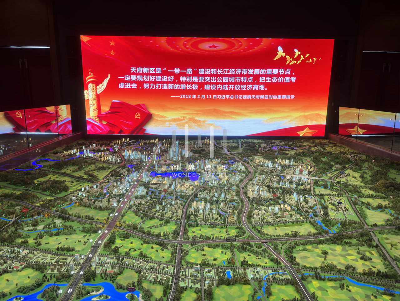 1、天府新区规划范围较大,模型展示面积较小,模型比例约1/3000,模型难以呈现展示效果;